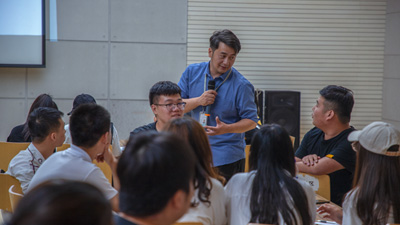 (图一)培训现场,张成老师与导生进行互动 (图二)导生之间,感受信任的力量 (图三)导生结合自身经历,向新生介绍校园生活环境 (图四)导生指导新生使用移动信息化工具 (图五)导生向新生传递...