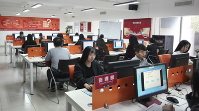 (图一)项目开发环节 (图二)项目沙盘模拟 (图三)薛婷老师与同学们讨论 (图四)企业培训师观摩小组项目进展 (图五)欢乐的课堂 (图六)岳娜老师现场指导 (图七)小组学习讨论 (...