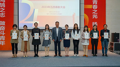 为表彰先进,充分发挥示范引领作用,激励广大青年、团员、团干部和基层团组织奋发有为、再创佳绩,4月26日下午,由共青团beat365正版唯一官网必一委员会主办的“beat365正版唯一官网必一五四表彰大会”在大学生活动中心多功能厅顺利召开。(图一)合影留念校党委副书记、纪委书记王志强,校领导张军宏出席了本次表彰大会,学生发展处副处长、校团委书记董杨,学生发展处处长助理、第四青年社区分党委书记李嘉瑜及各青年社区分党委书记,校团委干部、各基层团委书记共同参与了本次大会,...