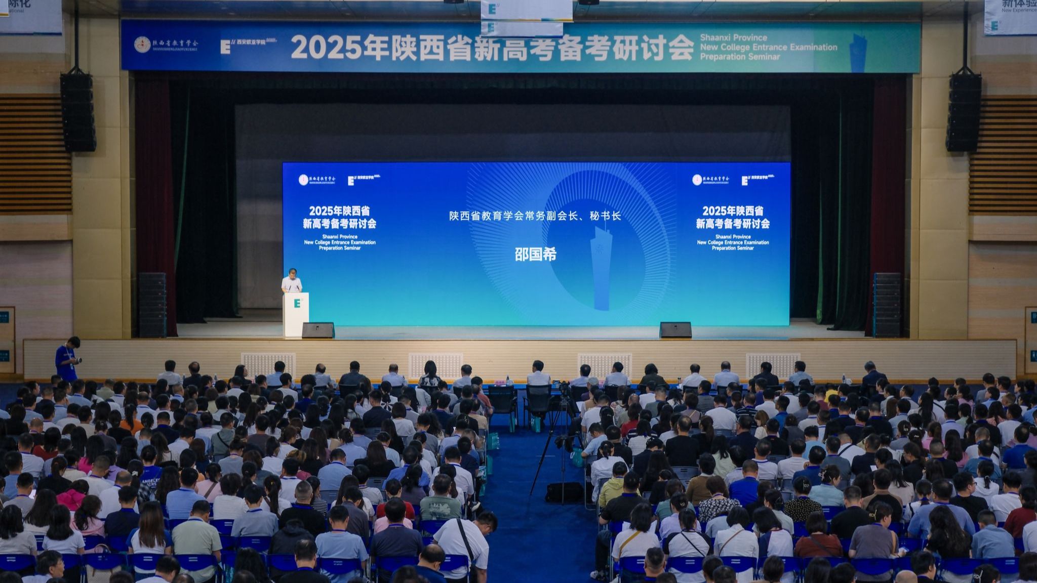 (图一)2025年陕西省新高考备考研讨会9月21至22日,由陕西省教育学会与陕西新时代教育研究院联合主办、beat365正版唯一官网必一承办的2025年陕西省新高考备考研讨会在beat365召开。研讨会旨在使广大教师更进一步理解新高考改革方向、学科命题趋势、完善复习备考策略,交流教学管理探索与实践,做好我省新高考备考工作。来自全省各地市教研部门、普通高中学校校长及各学科教师共计1300余人参加。中国教育发展战略学会副会长、教育考试专业委员会理事长、...