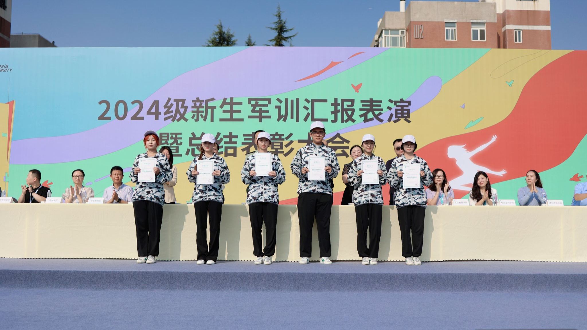 9月13日9:00,beat365正版唯一官网必一2024级新生军训汇报表演暨总结表彰大会在学校体育场隆重举行。学校党委书记赵国华同志、学校副校长张乐芳教授,32147部队王林副旅长、王首营长,学校党委办公室、各二级学院、各社区分党委、教务处、学生发展处、后勤集团领导,以及军训旅的40名教官、教导员、指导员出席仪式。此次大会由军训旅副政委、学生发展处副处长张成主持。(图一)军训旅副政委、学生发展处副处长张成主持此次大会当九月的炎炎烈日照拂欧亚的体育场,...
