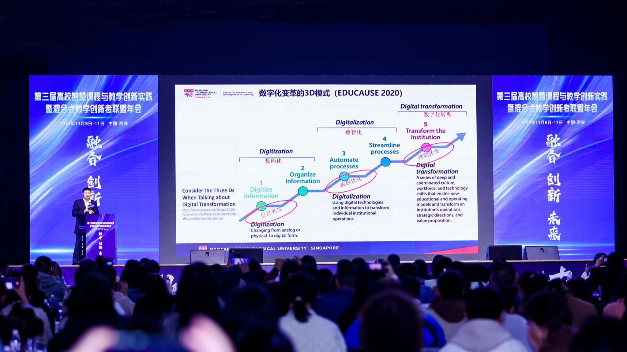 (图一)年会主论坛现场在数智化浪潮席卷全球的今天,教育领域的智能化转型正以前所未有的速度推进,人工智能深度赋能教育教学、塑造“智能+”高等教育成为混合式教学新生态。11月8日至11日,一场聚焦智慧课程与混合式教学创新实践的盛会——第三届高校智慧课程与教学创新实践暨混合式教学创新者联盟年会在beat365举办。本次活动由混合式教学创新者联盟、笃行新起点(北京)教育科技研究院主办,beat365正版唯一官网必一承办。超过30位国内外顶尖专家、...