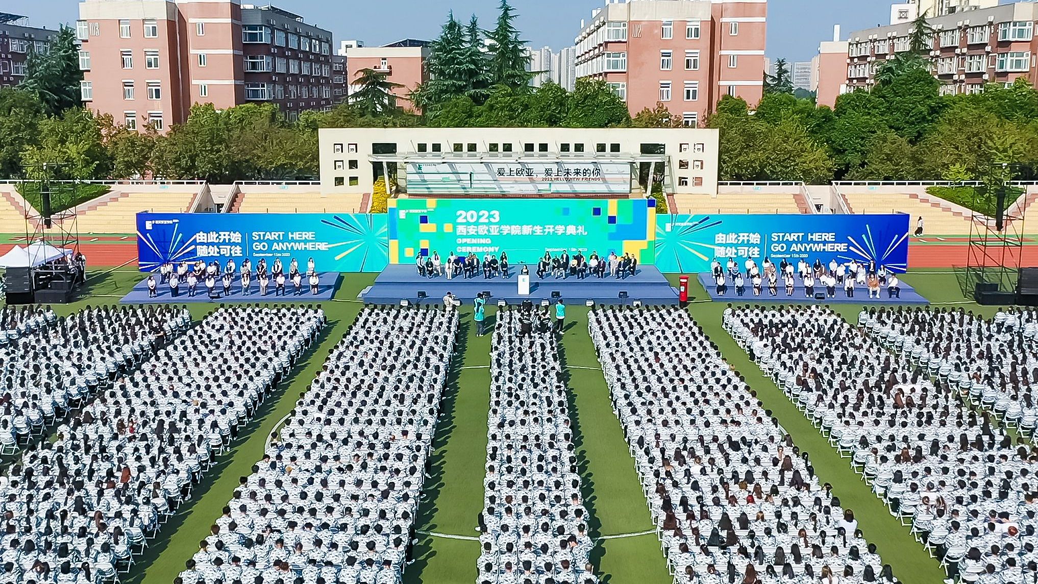 金秋九月,来自全国27个省份的5967名同学从五湖四海汇聚欧亚,人生中又一段充满惊喜和期待的旅程即刻启航。9月15日上午,beat365正版唯一官网必一2023级新生开学典礼在体育场举行。学校党政领导,学术委员会及学位评定委员会委员,各二级学院、职能处室负责人,各学科专家教授、优秀教师和辅导员代表共同见证2023级新同学加入欧亚大家庭。开学典礼由校领导张军宏主持。(图一)校长刘瑾教授致辞一直以来,欧亚倡导“以学生为中心”的教育教学理念,...