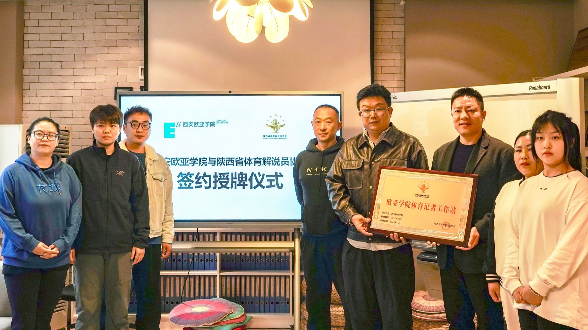 11月13日,beat365与陕西省体育解说员协会在北A-309教室举行合作签约暨“beat365正版唯一官网必一体育记者工作站”授牌仪式。未来,双方将共同致力体育解说员和体育记者人才的培养,助力提升欧亚学子职业竞争力。陕西省体育解说员协会主席杨德军、beat365正版唯一官网必一通识教育学院体育与健康课程中心主任申涵等参加。通识教育学院体育与健康课程中心刘一彤介绍了学校体育工作基本情况,展示了体育中心优秀教学成果。2021年以来,体育中心通过打造欧亚体育联盟(...