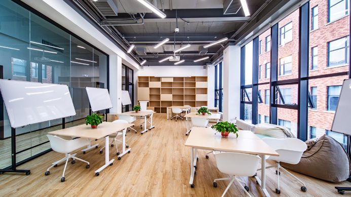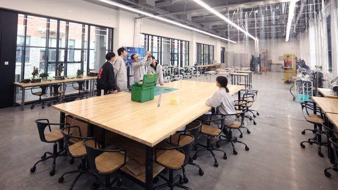 西区ab座教学楼为人居环境学院与信息工程学院教学楼,于2018年底完成改造,改造后新设制图制作教室、研讨及自学区域、实习实训工坊等特色教学实践场所,不仅优化了教学资源配置,更通过空间功能的动态调整,促进了新工科学科融合、创新创业、产学合作发展。