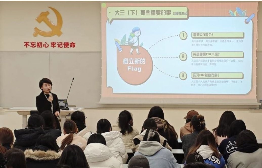 随着2025年春季新学期的到来,第三青年社区分党委的辅导员老师们以满腔的热情和严谨的态度,为学子们精心准备了一场场别开生面的“开学第一课”主题班会。辅导员老师各展所长,将传统文化和思想政治教育与安全教育、学业规划、心理健康教育等元素巧妙融合,共同为新学期启航筑牢坚实基础。收心启航,共绘新学期蓝图辅导员老师们深知,新学期伊始,同学们需要从假期的轻松氛围中快速调整到紧张的学习状态。因此,他们纷纷以收心教育为切入点,...