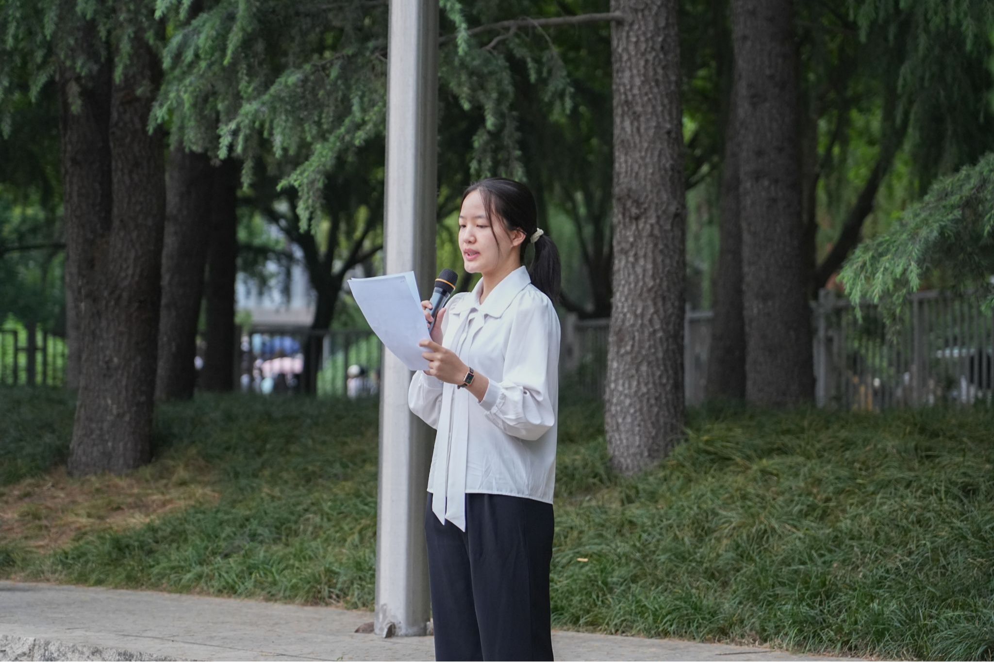 第二青年社区分党委副书记张庚同志以及各学生支部的学生代表出席本次升旗仪式。