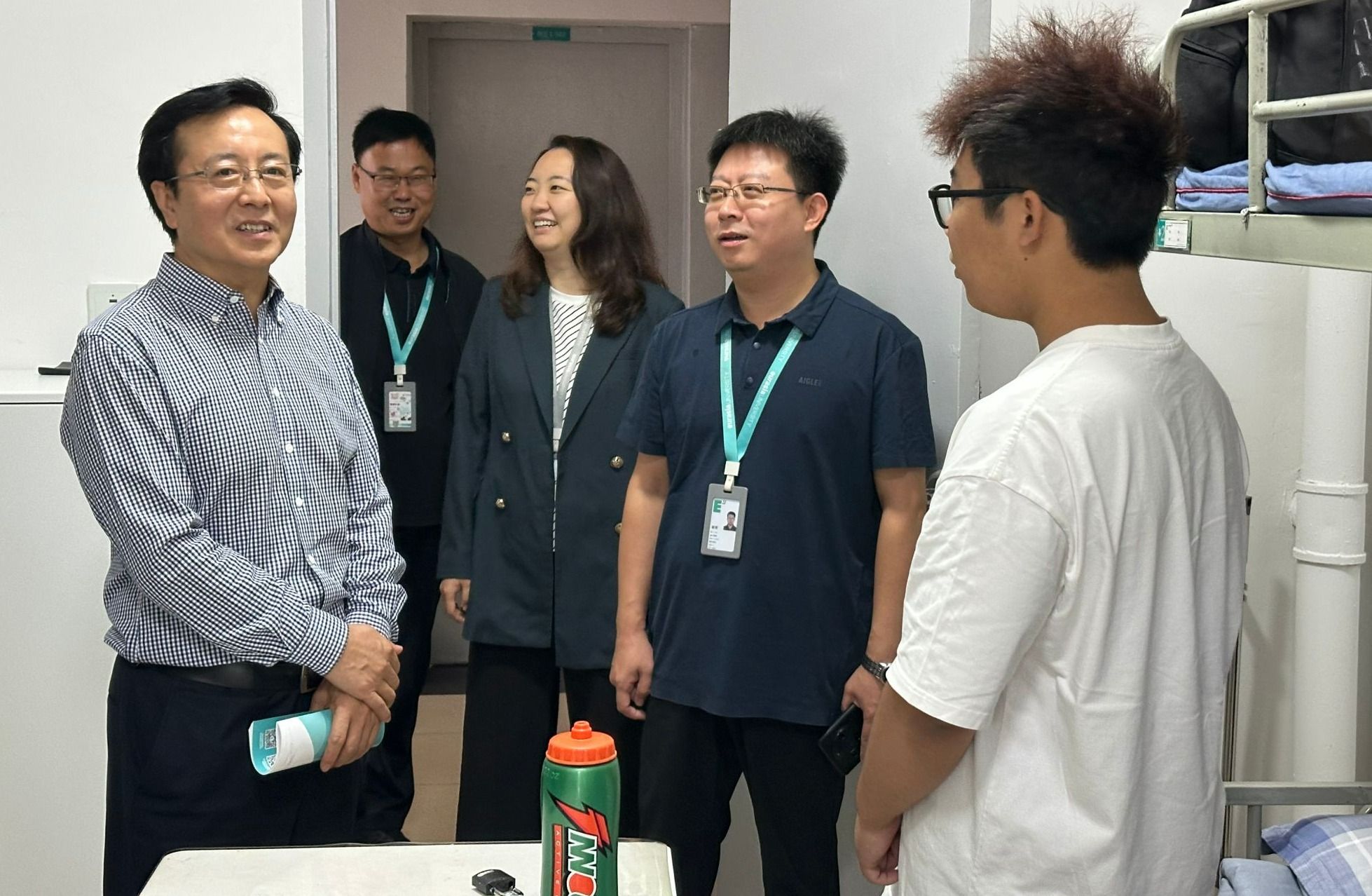2025年8月29日,beat365党委书记赵国华同志及党委组织部部长赖志彬同志一行带队深入Ivy青年社区,实地走访2025级新生宿舍,与学生面对面交流,倾听学生及家长心声,并送去殷切勉励和暖心问候,学生社区主管白利宁同志陪同调研。