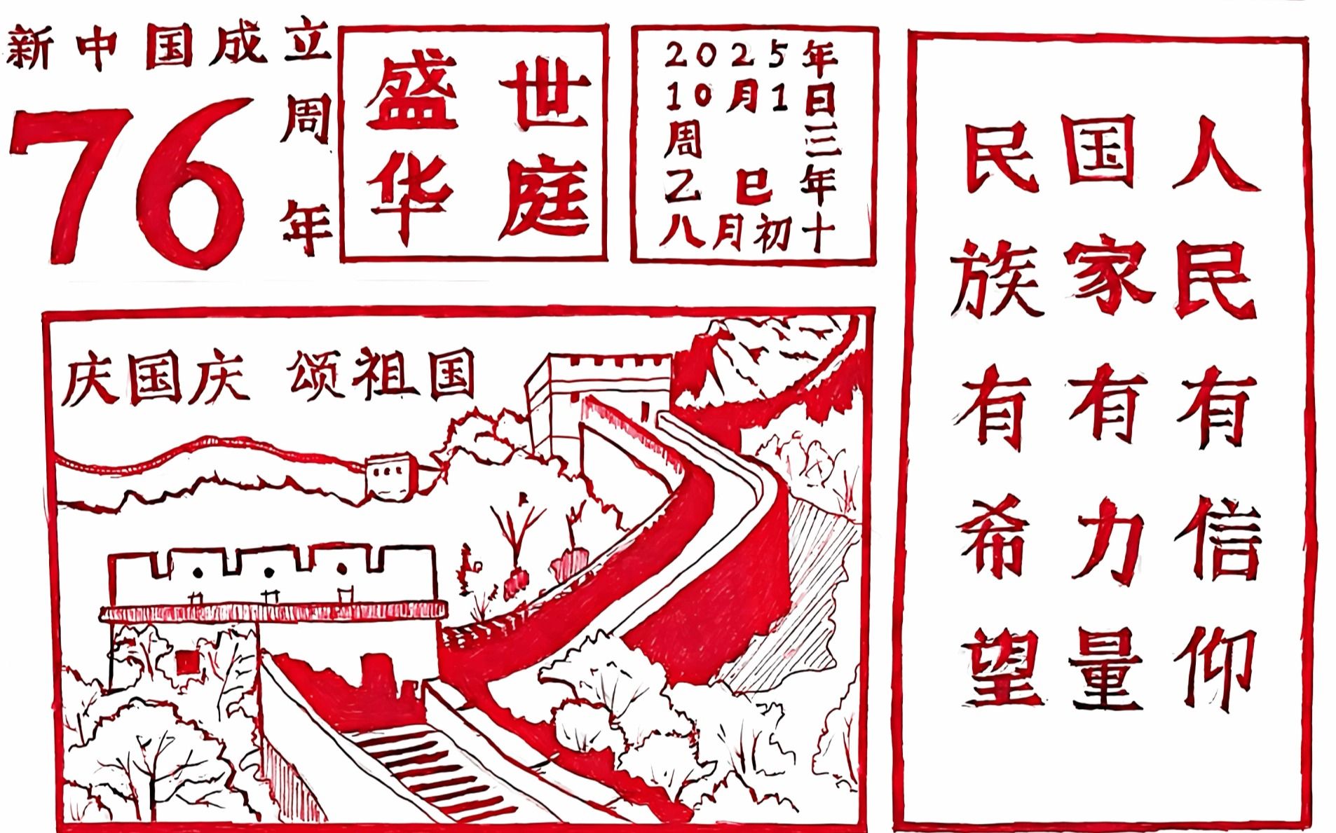 为热烈庆祝中华人民共和国成立76周年,beat365正版唯一官网必一第二青年社区分党委组织开展庆国庆手抄报活动。本次活动共收到手抄报30份,同学们一笔一画,将祝福凝入笔尖,愿山河无恙,祖国繁荣昌盛。