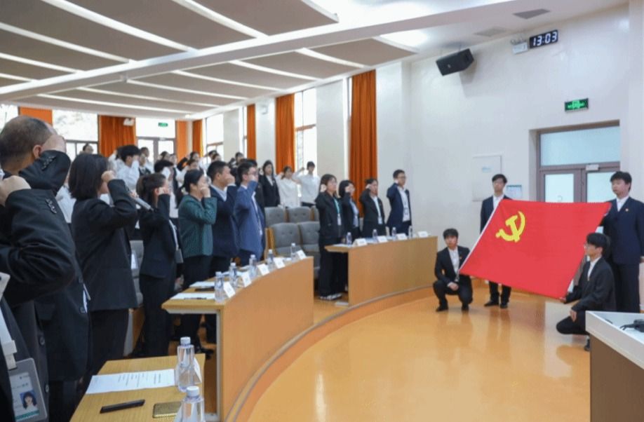 4月3日,第二青年社区分党委2023年下半年新发展党员入党宣誓大会在西C-001教室隆重举行。学校党委副书记、校长刘瑾同志出席会议并讲党课。校纪委委员、学工部部长董杨同志,第二青年社区分党委书记白利宁同志、副书记张庚同志、各支部书记及全体预备党员参加会议。